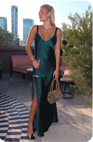 Think black, navy, chocolate, emerald, terracotta, champagne. Luxe textures welcome - velvet, satin, lace.